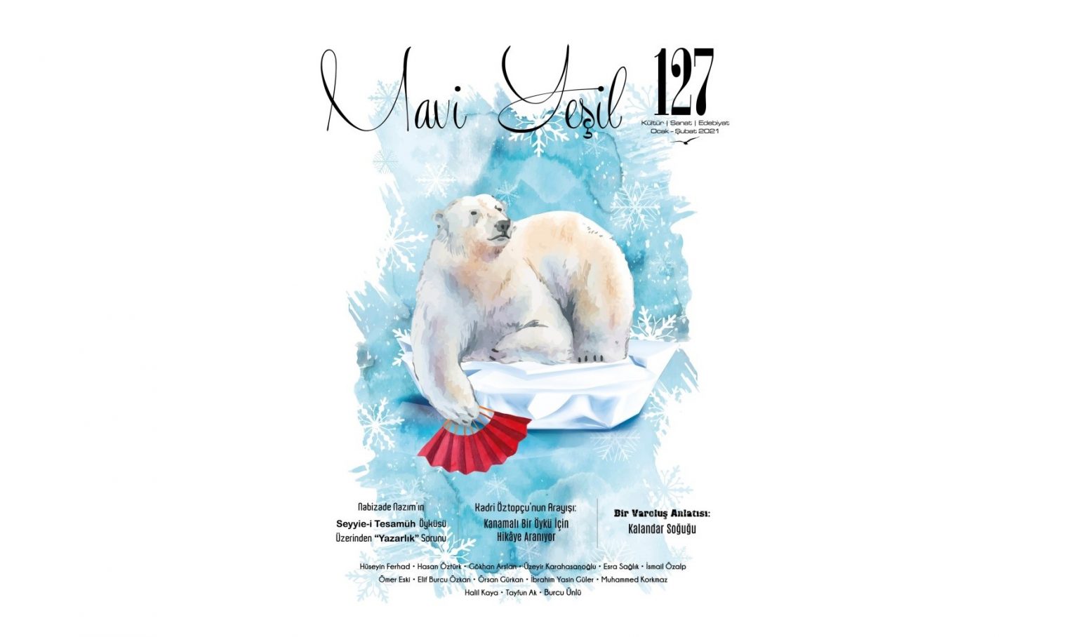 Mavi Yeşil, yirmi ikinci yılına başlıyor. Yirmi bir yıllık aralıksız yayımını tamamlayan Mavi Yeşil dergisi, Ocak-Şubat 2021 tarihli 127. sayısıyla yirmi ikinci yılına başladı. Ülkemizin genelindeki kanıksanmış sanat-edebiyat ilgisizliğine 2020’de virüs salgını sorunu da eklenenince ortam iyice değişti. Bu olumsuz koşullara rağmen iki aylık Mavi Yeşil dergisi, Bachmann’ın altmış yıl önceki Frankfurt Dersleri’nin, “edebiyattan hoşlanmamak da bir tür deliliktir” sözünün esiniyle içeriğinden ödün vermemeye, yayın çizgisini aksatmamaya özen gösterdi. Yeni yılın ilk sayısında okurlarımızın karşısına olabildiğince zengin bir içerikle çıkmaya çalıştık. Hüseyin Ferhad, Gökhan Arslan, Elif Burcu Özkan ve Muhammet Korkmaz, bu sayının şairleri. Eskimemiş Sayfalar, hazırlayıcısı Özkan Satılmış’ın adıyla özdeşleşti bu sayı. Esra Sağlık ile Örsan Gürkan, sinema yazılarıyla katıldılar dergiye. Üzeyir Karahasanoğlu ve Ömer Eski, kitaplar hakkında yazdı. İbrahim Yasin Güler, başka dünyaların edebiyatına yönelirken İsmail Özalp de toplumsal yaşayışımıza atasözleriyle bakmayı denedi. Hasan Öztürk, edebiyat ortamının değişmeyenlerini, yayımlanışı hayli eski bir öykü üzerinden gösterdi. Dergiye ilk kez katılan Halil Kaya, Burcu Ünlü ve Tayfun Ak, bu sayımızın öykücüleri.