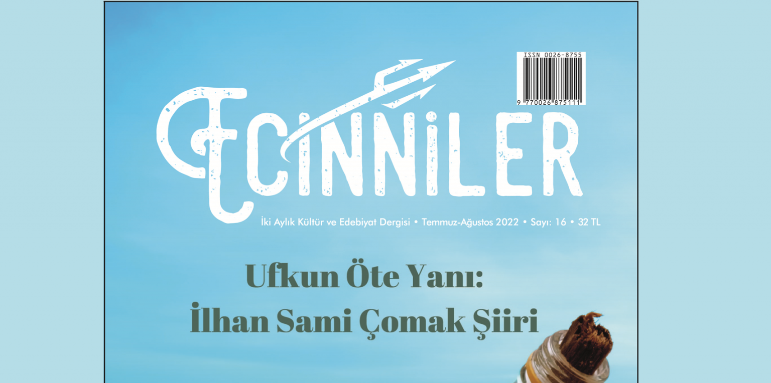 İki aylık kültür ve edebiyat dergisi Ecinniler, Temmuz-Ağustos 2022 (16.) sayısını yayımladı. Bu sayının dosyası kapsamında 28 yıldır hapiste bulunan şair İlhan Sami Çomak’ın özgürlük arayışı ve bunun etrafında şekillenen şiir dünyası mercek altına alındı. Gökhan Arslan editörlüğünde hazırlanan ve “Ufkun Öte Yanı: İlhan Sami Çomak Şiiri” başlığını taşıyan dosyada, Arslan’ın İlhan Sami Çomak ile gerçekleştirdiği söyleşinin yanında Mahmut Temizyürek, Necmiye Alpay, Erkut Tokman, Asuman Susam, Vasfettin Yağız, Ayşegül Tözeren ve Cenk Kolçak’ın yazıları ile Çomak’ın iki tane el yazısı şiiri yer alıyor.