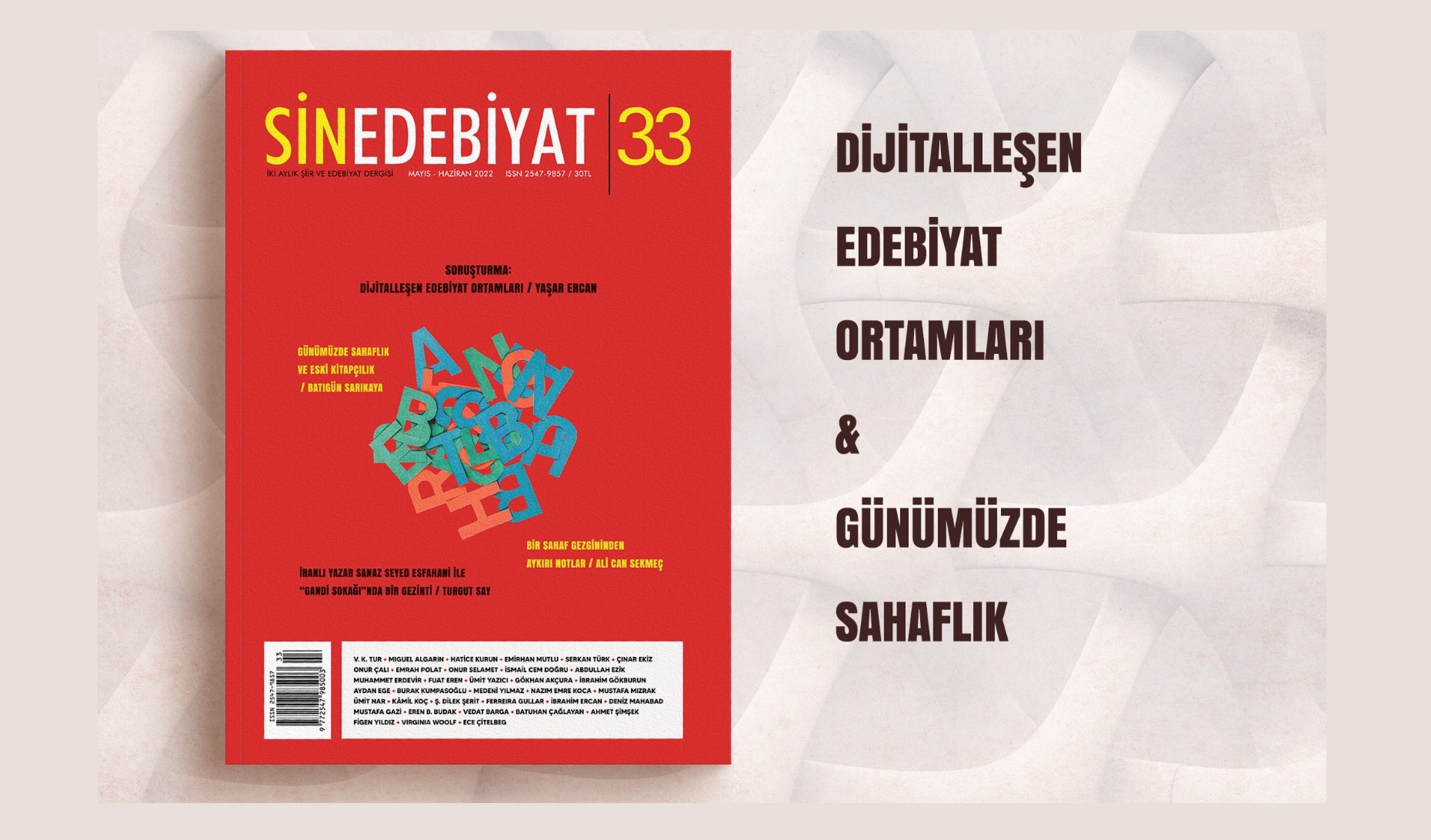Çağdaş Türk edebiyatında özgün dosyalar ve yazılarla yerini alan Sin Edebiyat, bu sayısıyla yayın hayatına son verdi. İçinde bulunduğumuz ekonomik sıkıntılar, yayıncılık sektöründeki baskı ve dağıtım sorununa, kâğıdın döviz kuruna endeksli olması, dolayısıyla artan kurun etkisiyle katlanan maliyetler de eklenince ülkemizde sıkıntıya düşen birçok sektör gibi yayıncılık sektörü de yara aldı. Bu durum yayıncılar için kapanma seçeneğinin yanında dijital yayıncılığa geçme seçeneğini de yeniden gündeme getirdi. Biz de bu sayımızda dijital ortamda edebiyat yayıncılığı yapan güzide isimlere yeni yayıncılık döneminin merak edilenlerini sorduk. Ayrıca henüz kâğıdın cazibesinden kopmayan ve köklü bir meslek olan sahaflığın yaşadığı sıkıntılara ve eski kitapların son dönemdeki durumuna kulak vermek üzere ülkemizin çeşitli bölgelerinde sahaflık yapan değerli isimlere çeşitli sorular yönelttik.